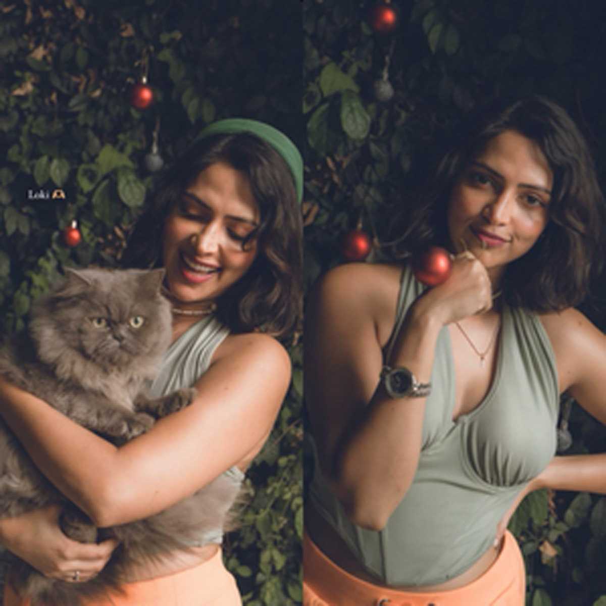 अपने बेबी बंप को फ्लॉन्ट करते हुए, अमला ने अपनी पालतू बिल्ली लोकी के साथ कई पोज दिए।