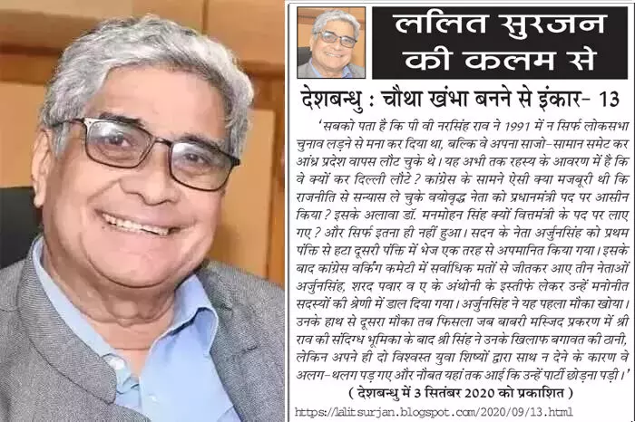 'सबको पता है कि पी वी नरसिंह राव ने 1991 में न सिर्फ लोकसभा चुनाव लड़ने से मना कर दिया था, बल्कि वे अपना साजो-सामान समेट कर आंध्र प्रदेश वापस लौट चुके थे। यह अभी तक रहस्य के आवरण में है कि वे क्यों कर दिल्ली लौटे?