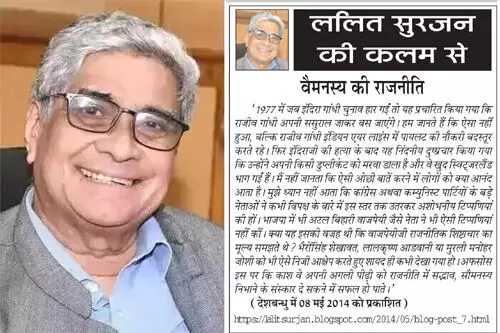 ललित सुरजन की कलम से वैमनस्य की राजनीति