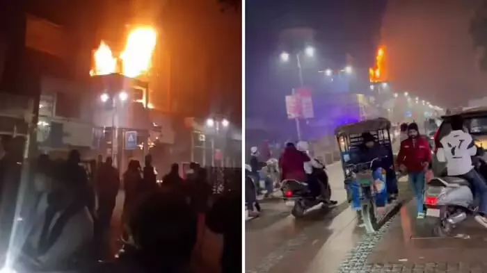 चांदनी चौक में कपड़ा शोरूम में लगी भीषण आग, लाखों का सामान राख; इलाके में मची अफरा-तफरी