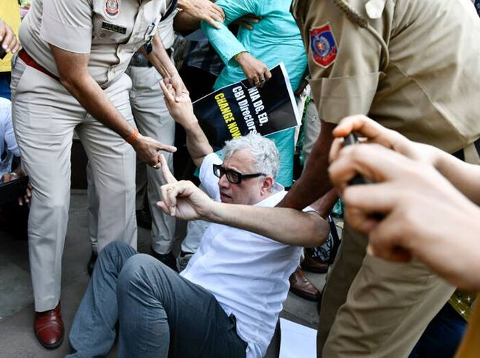 धरने में शामिल सांसद और पुलिस कार्रवाई