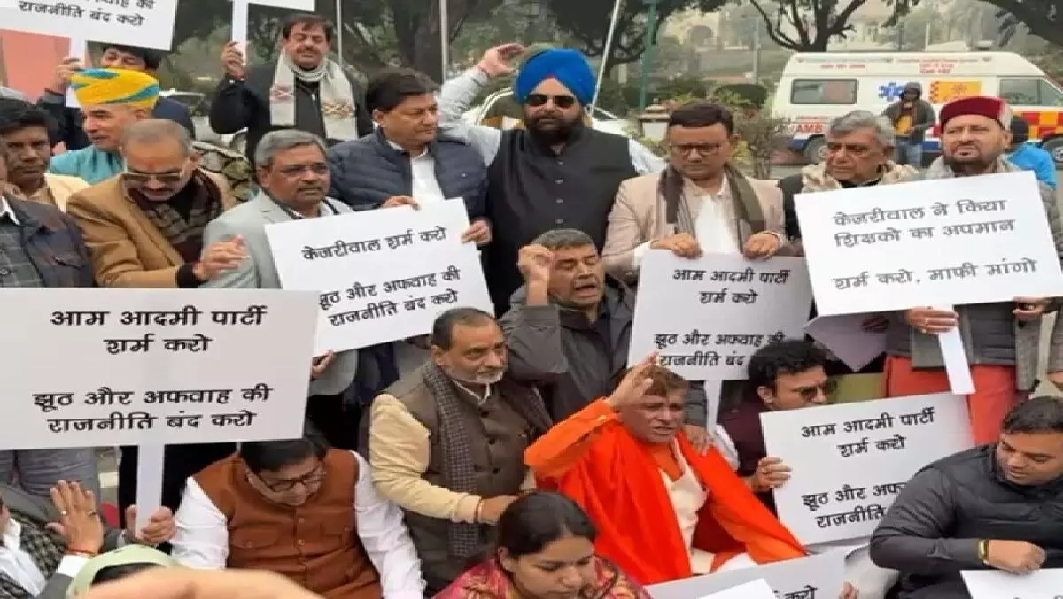 भाजपा नेताओं ने दिल्ली विधानसभा के अंदर अरविंद केजरीवाल माफी मांगो के नारे लगाए जिससे विधानसभा के अंदर माहौल गरमा गया। शिक्षा मंत्री आशीष सूद समेत तमाम विधायकों का कहना है कि केजरीवाल और उनकी पार्टी ने कुत्तों की गिनती के लिए सरकारी टीचरों की नियुक्ति को लेकर झूठ फैलाया।