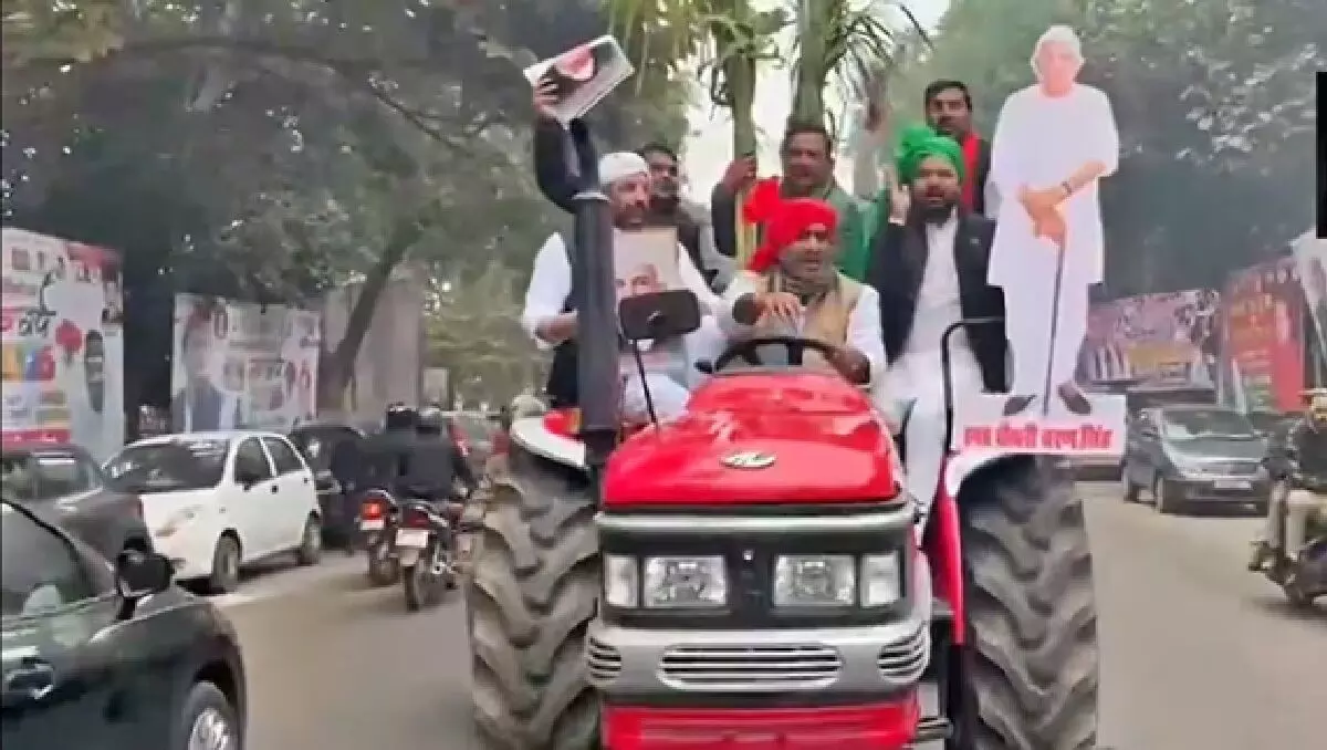 कोडीन सिरप को लेकर सपा का हल्ला बोल, ट्रैक्टर पर सवार होकर यूपी विधानसभा पहुंचे विधायक