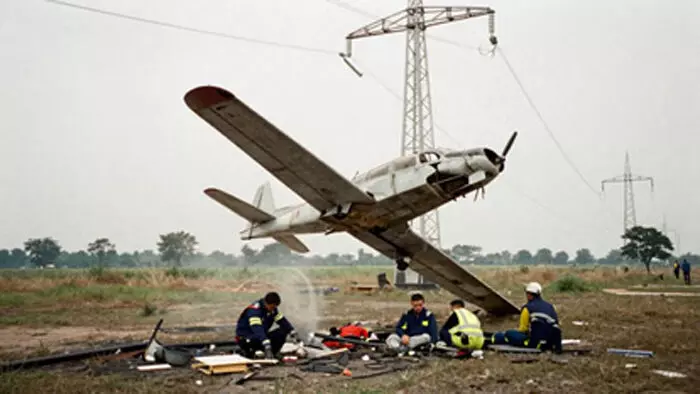 हाई वोल्टेज लाइन से टकराया विमान, 90 गांवों में अंधेरा