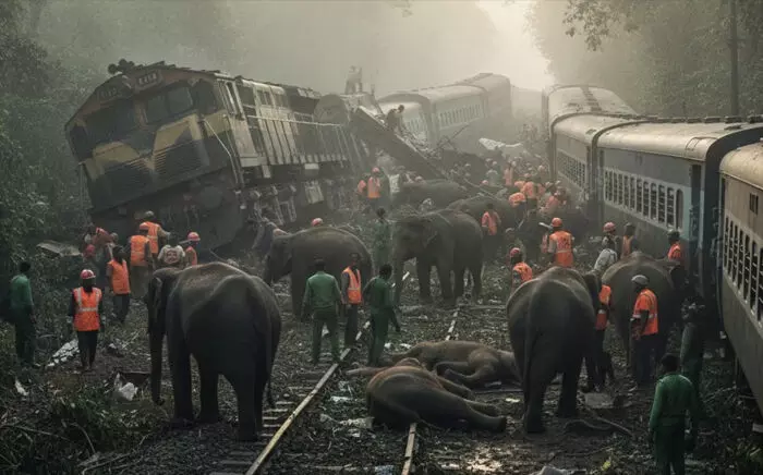 असम में राजधानी एक्सप्रेस की चपेट में आने से 7 हाथियों की मौत, ट्रेन के 5 डिब्बे पटरी से उतरे