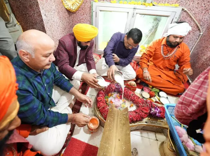 महा शिवरात्रि के मौके पर अरविंद केजरीवाल और भगवंत सिंह मान ने श्री रणकेशवर महादेव मंदिर में माथा टेका, पंजाब की शांति और खुशहाली के लिए की प्रार्थना