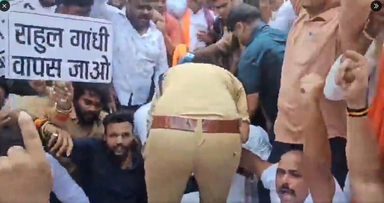 राहुल गांधी के काफिले पर भाजपा ने किया हमला, गाड़ी रोक रास्ते में धरने पर बैठे दिनेश प्रताप सिंह