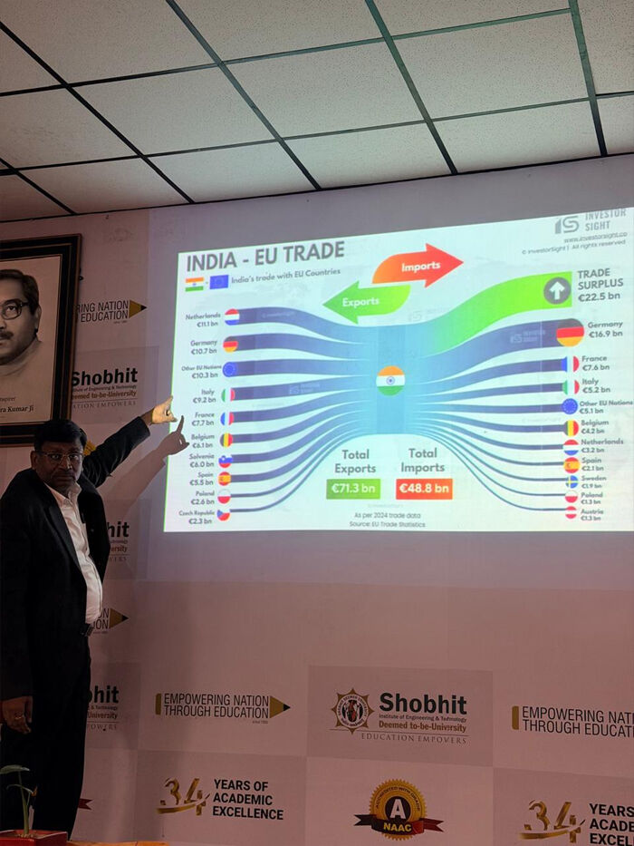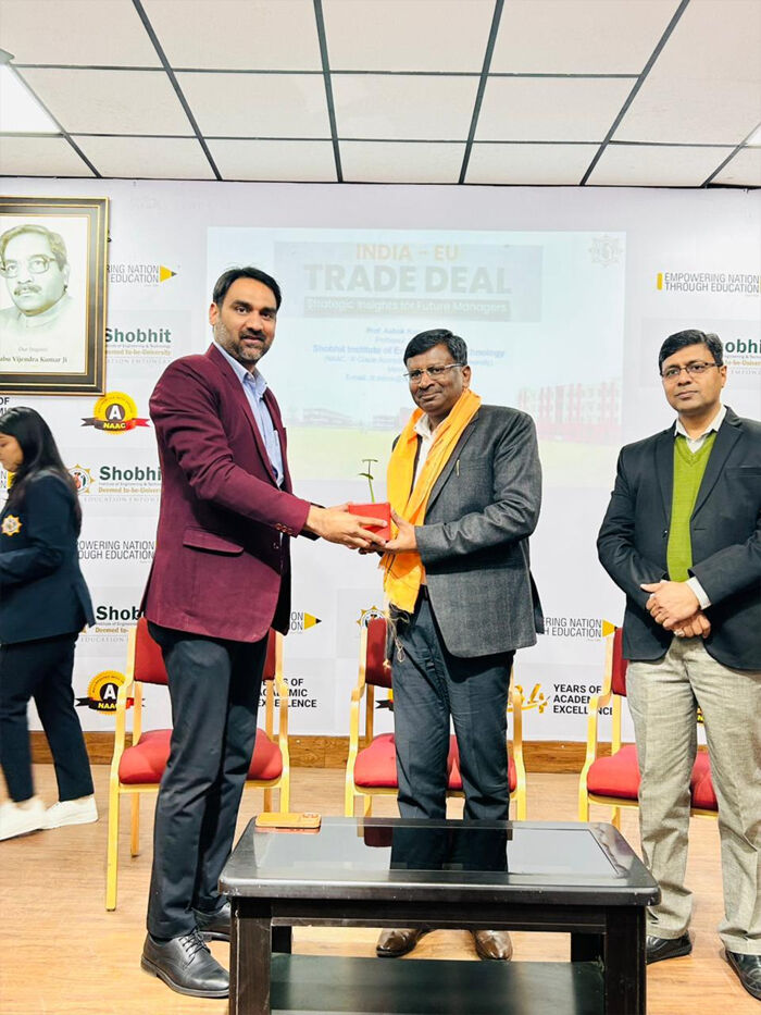 शोभित विश्वविद्यालय के प्रशिक्षण एवं प्लेसमेंट प्रकोष्ठ द्वारा भारत–यूरोपीय संघ मुक्त व्यापार समझौते पर मास्टरक्लास का आयोजन