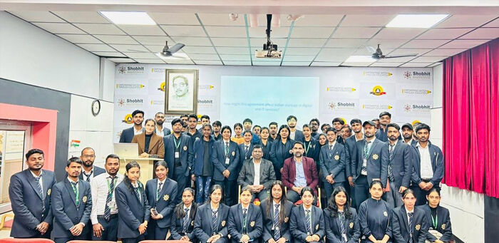 शोभित विश्वविद्यालय, मेरठ परिसर के प्रशिक्षण एवं प्लेसमेंट प्रकोष्ठ द्वारा प्रबंधन छात्रों के लिए “भारत–यूरोपीय संघ व्यापार समझौता ” विषय पर मास्टरक्लास का आयोजन किया गया