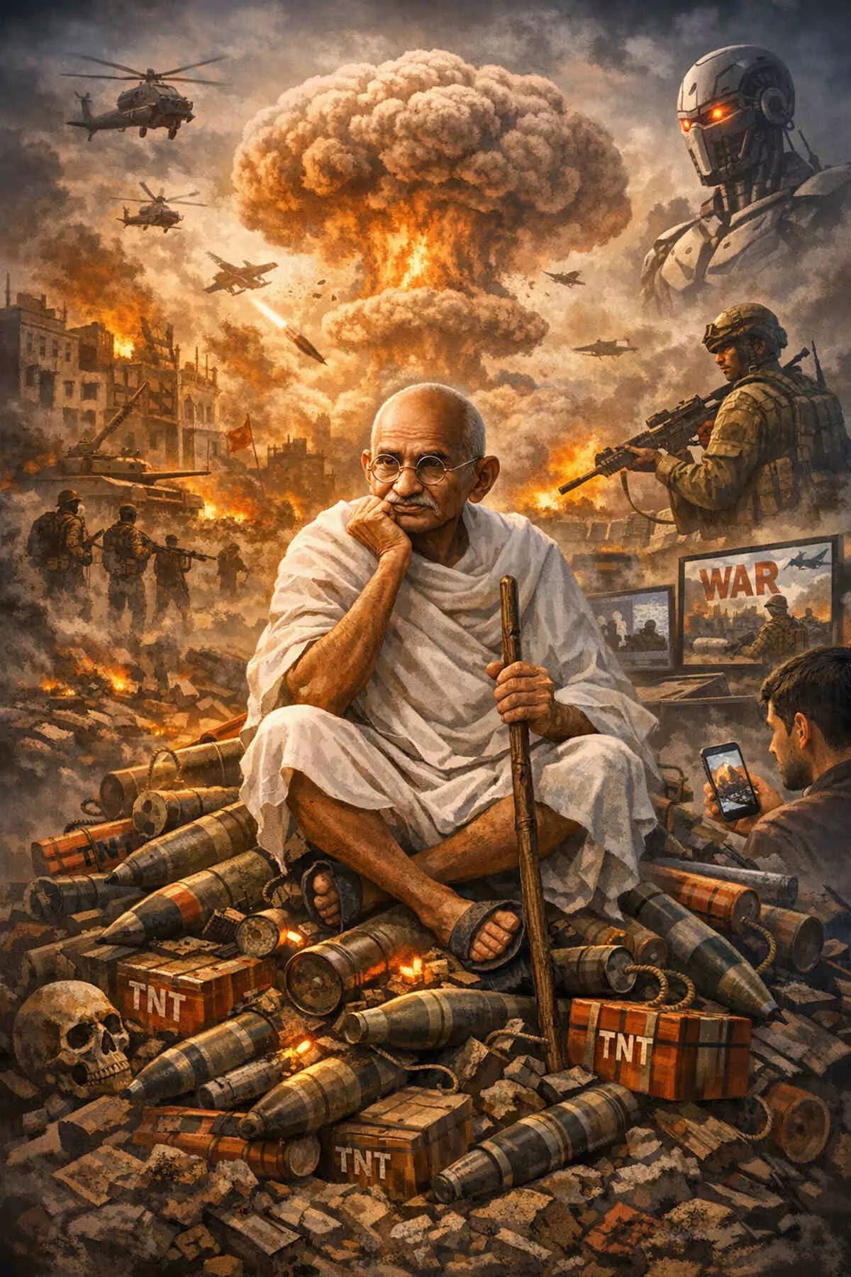 आज की दुनिया एक अजीब और डरावनी विडंबना से गुजर रही है। एक तरफ हमारे पास कृत्रिम मेधा (एआई) और अंतरिक्ष फतह करने वाली तकनीक है, तो दूसरी तरफ हमारे विचार पाषाण युग की हिंसक प्रवृत्तियों की ओर लौट रहे हैं। रूस की सीमाओं से लेकर मध्य-पूर्व के मलबों तक, और दक्षिण चीन सागर की लहरों से लेकर हमारे अपने भीतर पनपती नफरत तक—पूरी मानवता आज बारूद के ढेर पर बैठी है। ऐसे समय में जब मिसाइलों की गर्जना और ड्रोनों की भिनभिनाहट को 'राष्ट्रीय गौरव' का संगीत मान लिया गया हो, महात्मा गांधी की याद आना कई लोगों को एक पुरानी पड़ चुकी रस्म लग सकता है।
