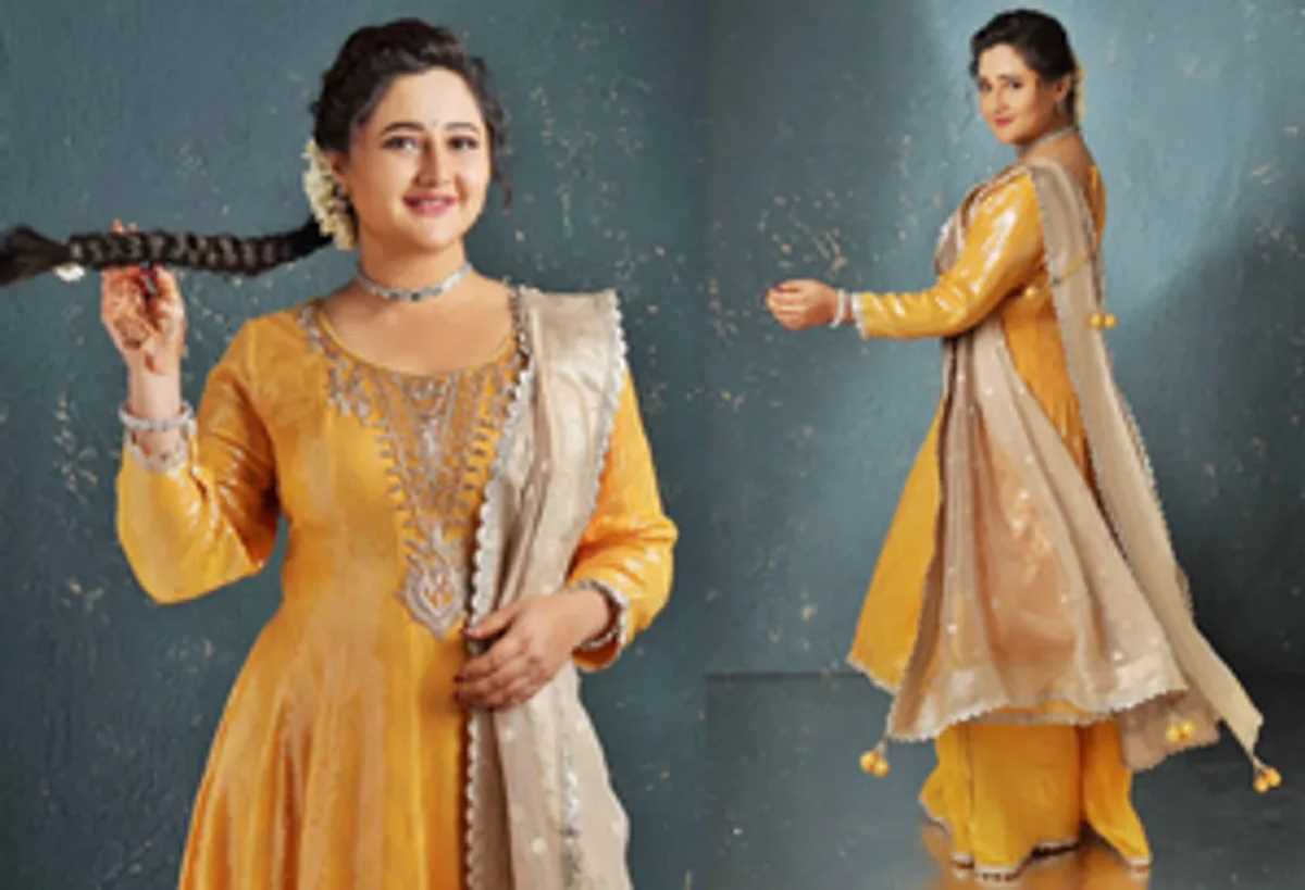 रश्मि ने इंस्टाग्राम पर अपनी तीन तस्वीरें शेयर कीं। इसमें वह गोल्डन पीले रंग के शरारा सूट में नजर आ रही हैं। इसके साथ अभिनेत्री ने गोल्डन दुपट्टा लिया हुआ है। उन्होंने अपने इस लुक को चोकर, बालों में फूल और हल्के मेकअप के साथ पूरा किया। उन्होंने कैमरे के सामने कई शानदार पोज दिए।