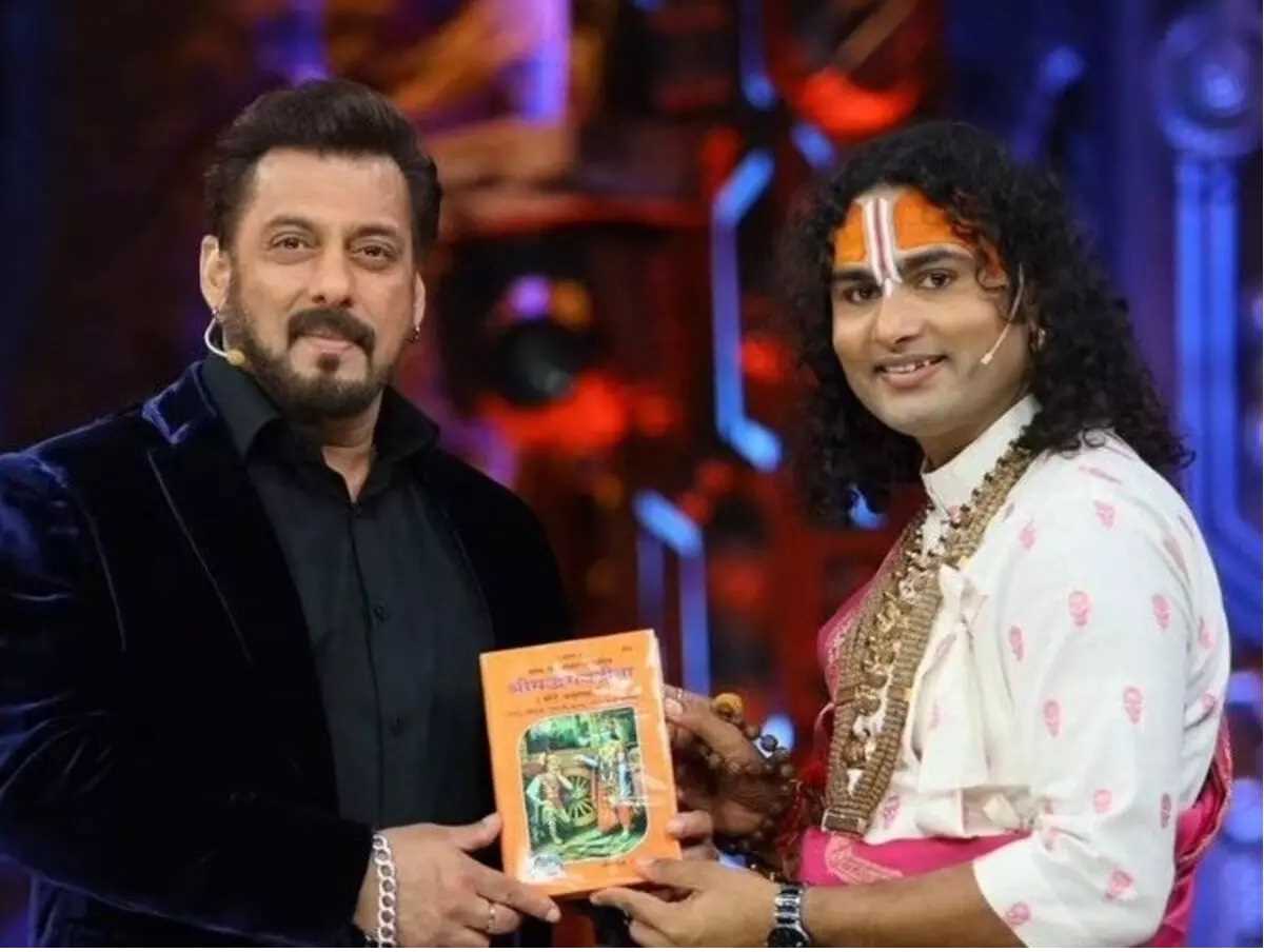 शो के सेट पर पहुंचे अनिरुद्धाचार्य महाराज ने बॉलीवुड सुपरस्टार सलमान खान को गीता भेंट की।