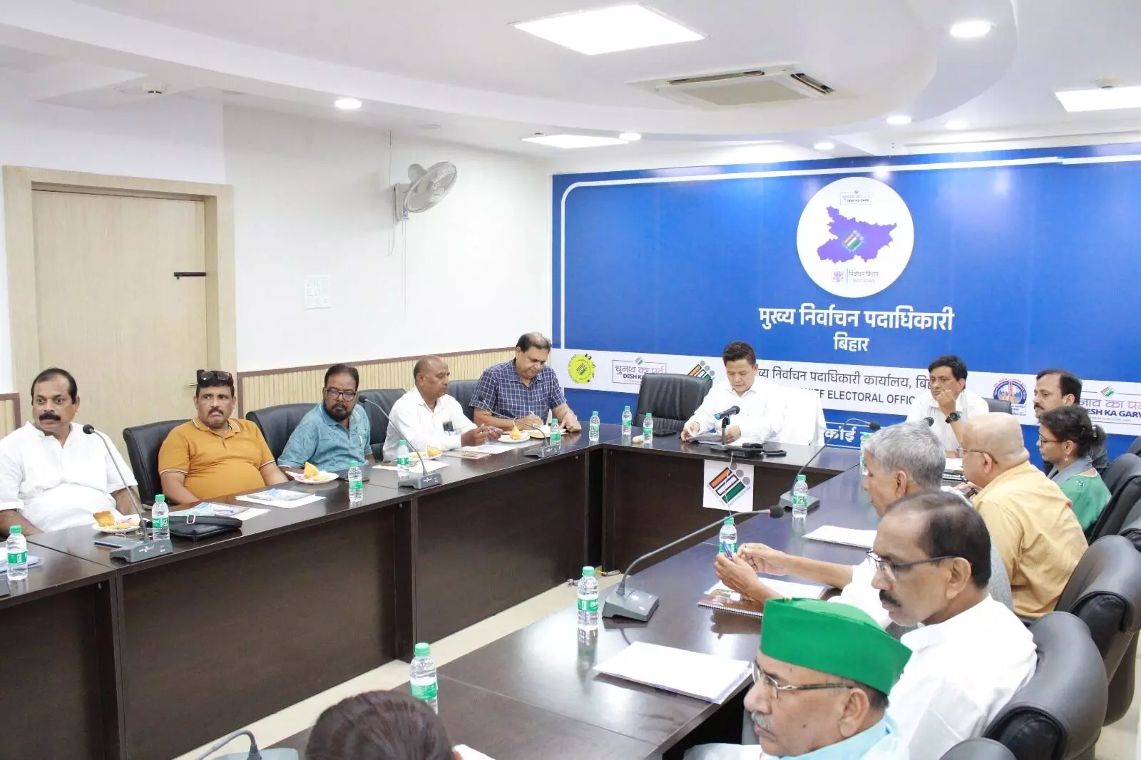 पटना। विशेष गहन पुनरीक्षण कार्यक्रम 2025 के तहत 19 जुलाई को मुख्य निर्वाचन पदाधिकारी, बिहार द्वारा राज्य मुख्यालय में मान्यता प्राप्त राष्ट्रीय और राज्यस्तरीय राजनीतिक दलों के प्रतिनिधियों के साथ अहम बैठक आयोजित की गई। बैठक में मुख्य निर्वाचन पदाधिकारी ने विशेष गहन पुनरीक्षण के कार्यक्रम और अब तक की प्रगति की विस्तार से जानकारी दी।