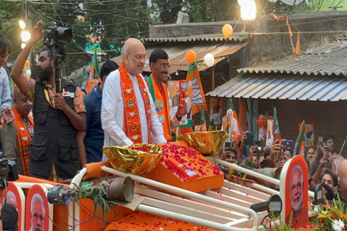 रांची में अमित शाह के रोड शो में उमड़ी भीड़, कहीं पुष्प वर्षा, कहीं लगे जोरदार नारे