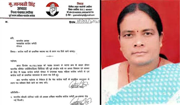 मध्यप्रदेश के उमरिया जिला पंचायत की अध्यक्ष ज्ञानवती सिंह ने कांग्रेस से त्यागपत्र दे दिया है।