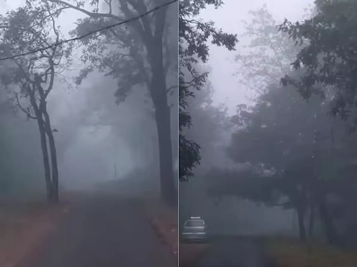 बारिश के दौरान पेड़ों से बूंदें टपकना, पेड़ों की डालियों में लड़ियों सी सज जाती हैं। घने मिश्रित के वनों के ऊपर छतरी से छाए बादल मंडरा रहे हैं, धुएं सा आभास होता है, पानी की फुहार गिरती रहती है, रिमझिम-रिमझिम, धीरे-धीरे। पहाड़ों पर बादल उड़ते दिखते हैं।
