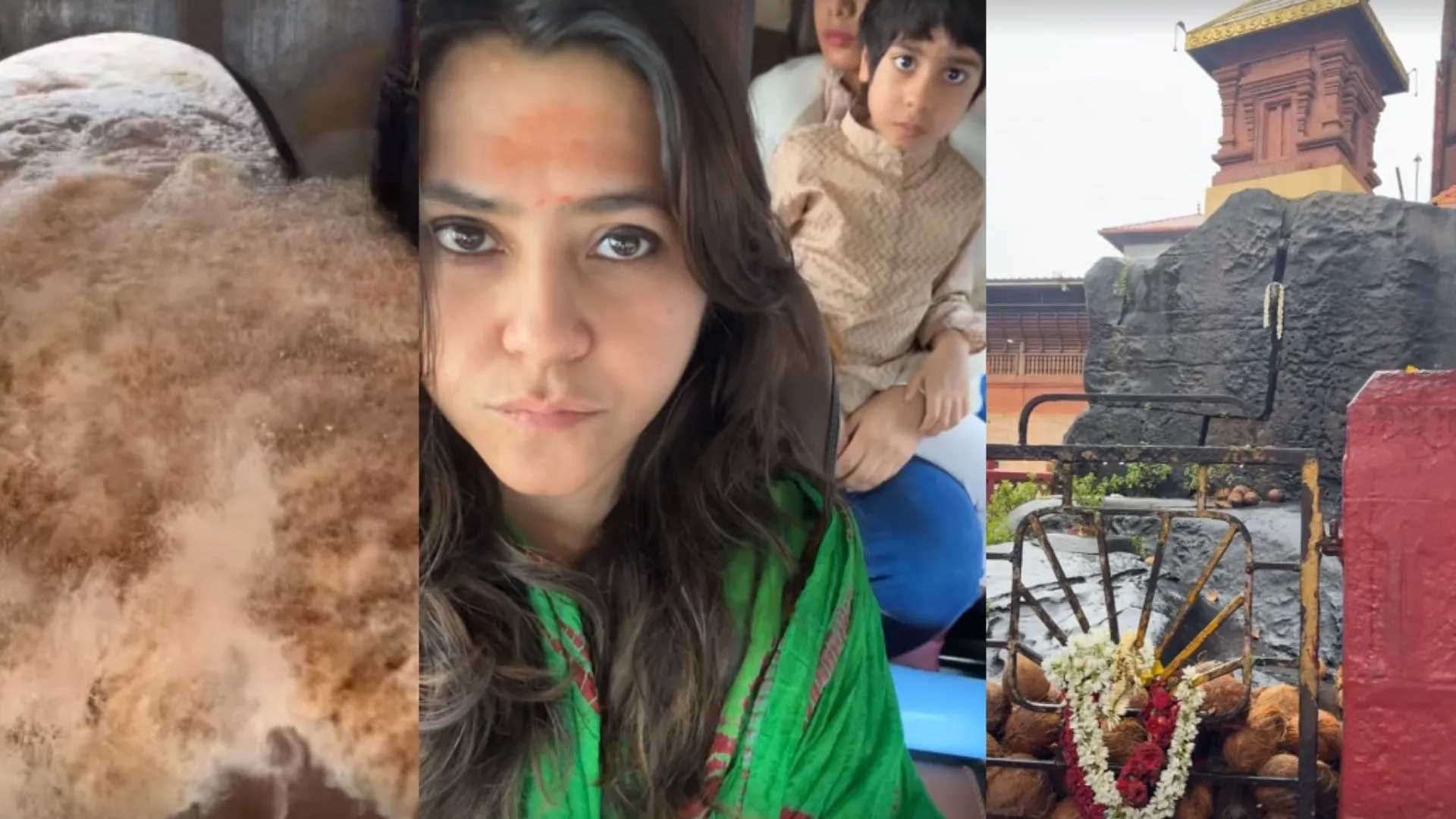 एकता ने इंस्टाग्राम स्टोरीज पर अपने बेटे रवि कपूर के साथ दुर्गा परमेश्वरी मंदिर की यात्रा की कई क्लिप और तस्वीरें शेयर की।