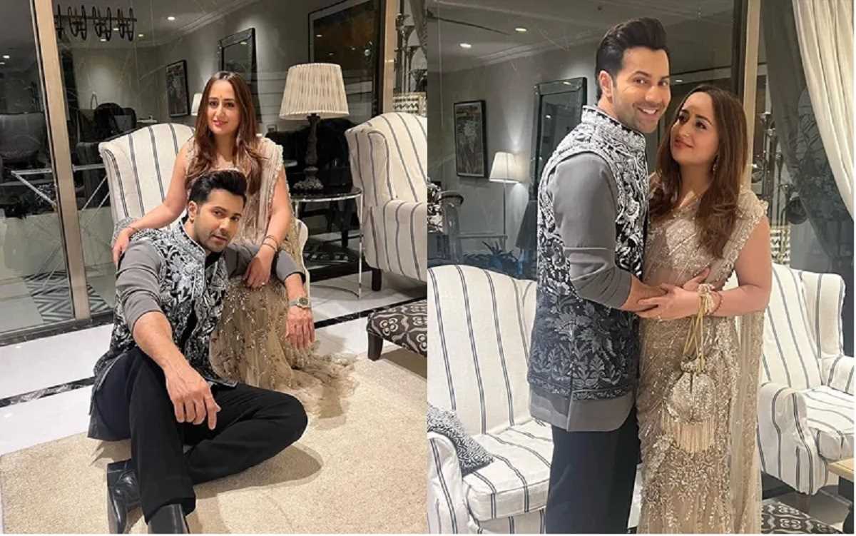 तस्वीरों में वरुण ग्रे, ब्लैक और सिल्वर आउटफिट में दिखाई दे रहे हैं। वहीं, नताशा शिमरी बेज साड़ी में नजर आईं।