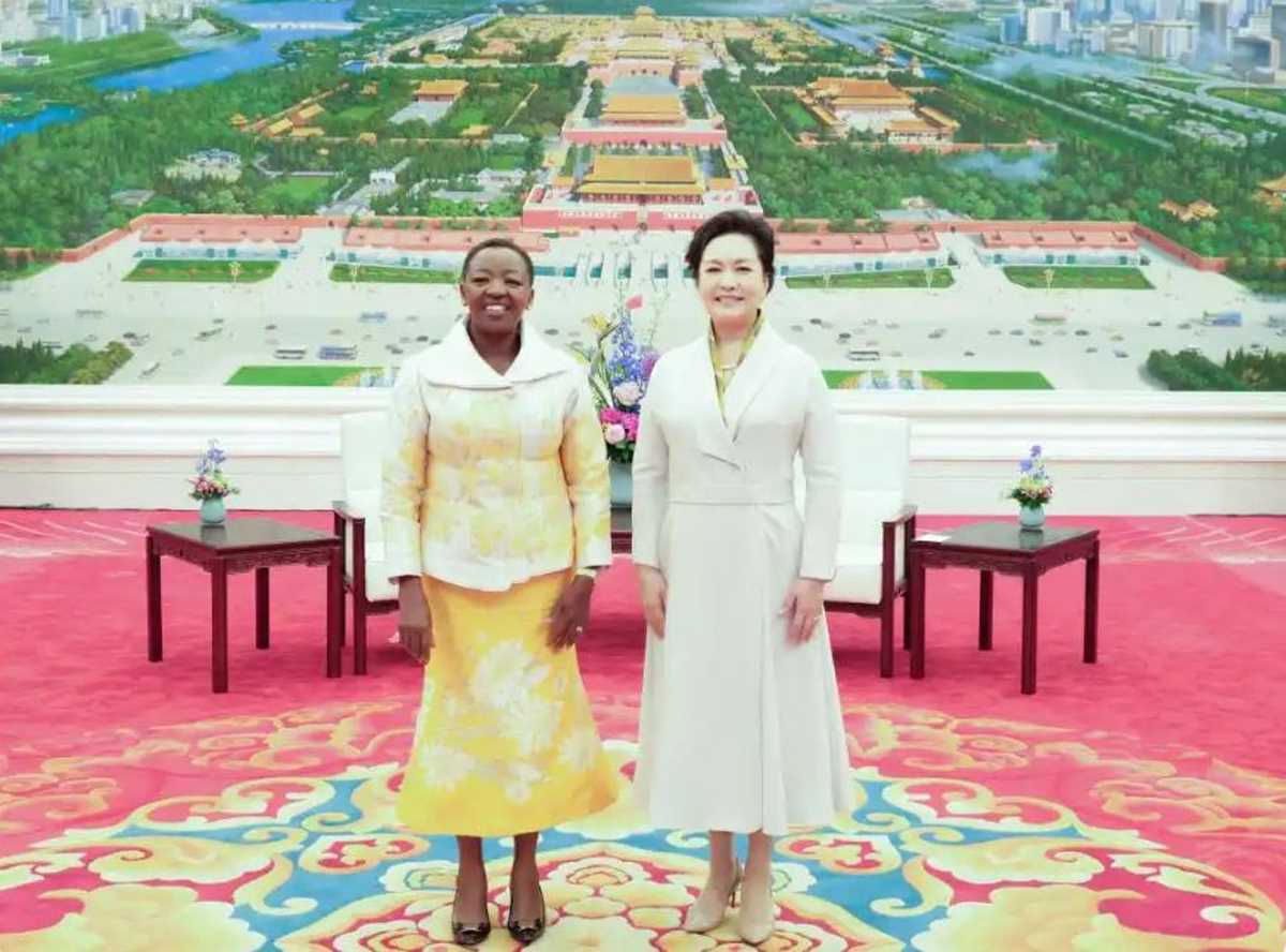 चीनी राष्ट्रपति शी चिनफिंग की पत्नी फेंग लियुआन ने केन्याई राष्ट्रपति विलियम समोई रुटो की पत्नी राचेल रुटो के साथ पेइचिंग में चाय पी, जो केन्याई राष्ट्रपति रुटो के साथ चीन की राजकीय यात्रा पर हैं
