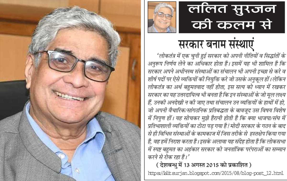 ललित सुरजन की कलम से - सरकार बनाम संस्थाएं