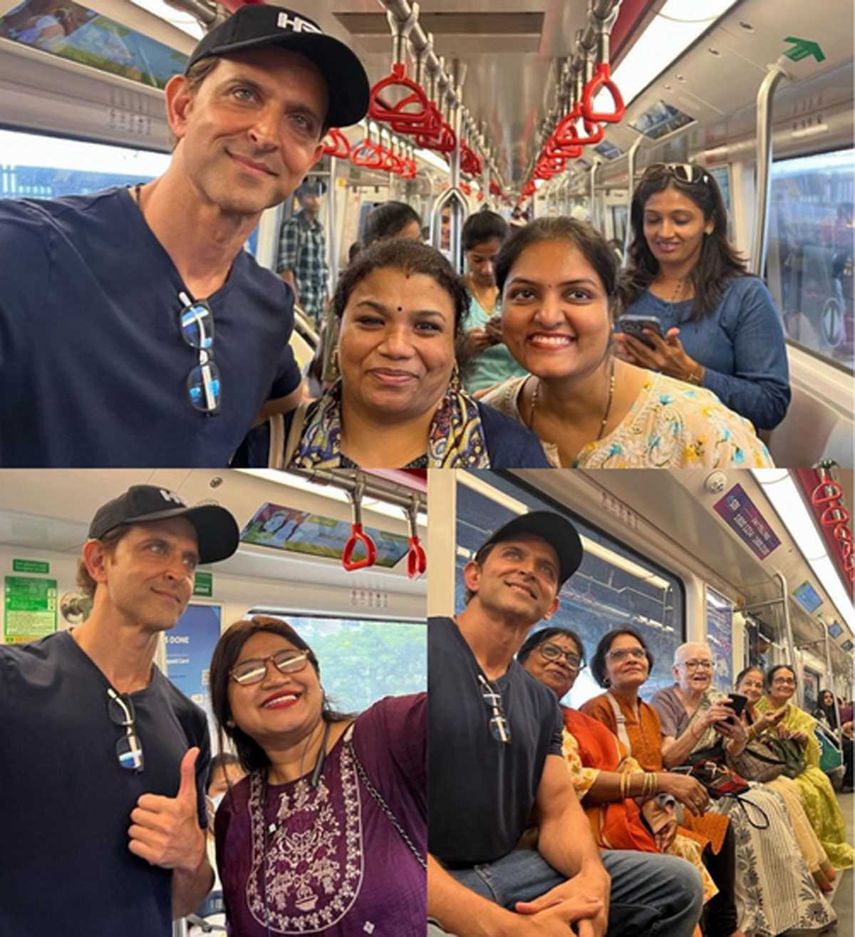 अभिनेता ने इंस्टाग्राम अकाउंट पर मेट्रो यात्रा की कई तस्वीरें और वीडियो साझा किए। ऋतिक को आधी आस्तीन वाली नेवी ब्लू टी-शर्ट और मैचिंग टोपी पहने देखा जा सकता है। एक्टर अपने टोन्ड बाइसेप्स को फ्लॉन्ट कर रहे हैं।