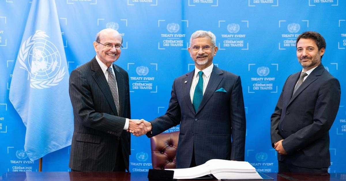 विदेश मंत्री कहा, "भारत बीबीएनजे समझौते में शामिल होने पर गर्व महसूस कर रहा है, हमारे महासागर स्वस्थ और लचीले बने रहें इस दिशा में यह एक महत्वपूर्ण कदम है।"
