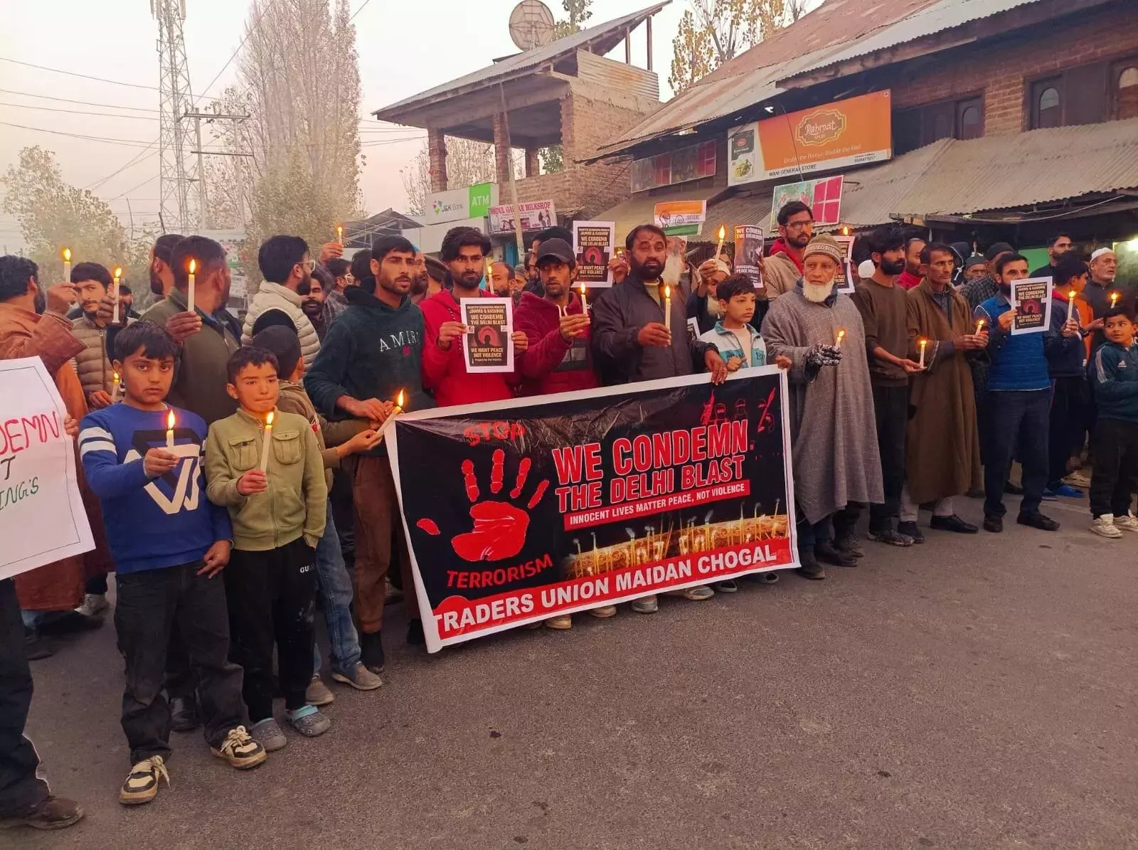 दिल्ली के लाल किले के पास हुए घातक विस्फोट की निंदा में कश्मीर के कई जिलों में कैंडल मार्च जारी है, जिसमें कई निर्दाेष लोगों की जान चली गई