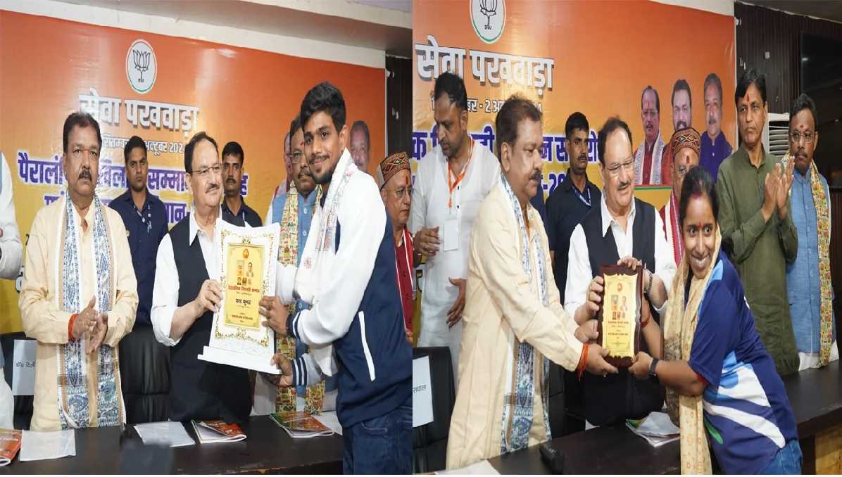 एक दिन के बिहार दौरे पर शनिवार को राजधानी पटना पहुंचे भाजपा के राष्ट्रीय अध्यक्ष जे.पी. नड्डा ने यहां पार्टी के प्रदेश कार्यालय में सेवा पखवाड़ा के तहत आयोजित पैरालंपिक खिलाड़ी सम्मान और सदस्यता अभियान समारोह के तहत पैरालंपिक खिलाड़ियों को सम्मानित किया। इस मौके पर 20 चर्चित खिलाड़ियों ने भाजपा की सदस्यता भी ग्रहण की