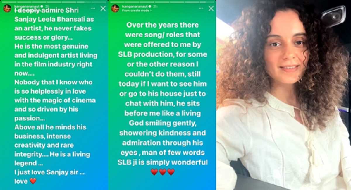 एक्ट्रेस कंगना रनौत ने फिल्म निर्माता संजय लीला भंसाली की प्रशंसा की है और उन्हें 'भगवान और लीजेंड' कहा।