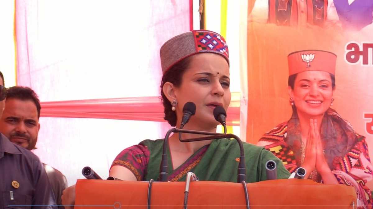 हिमाचल प्रदेश के सुंदर नगर के निहरी में मंडी लोकसभा सीट से भाजपा उम्मीदवार कंगना रनौत ने एक जनसभा को संबोधित किया