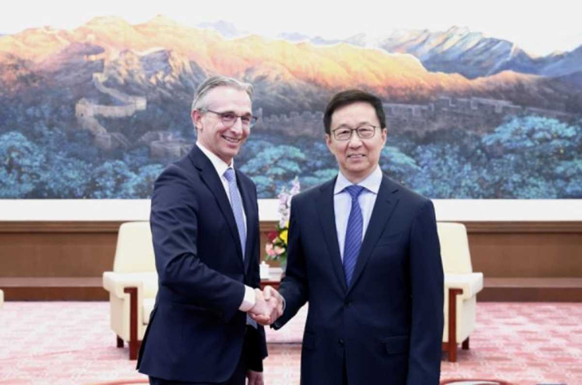 चीनी उपराष्ट्रपति हान चेंग ने चीन की राजधानी पेइचिंग में नीदरलैंड की रॉयल फिलिप्स के सीईओ रॉय जैकब्स से मुलाकात की