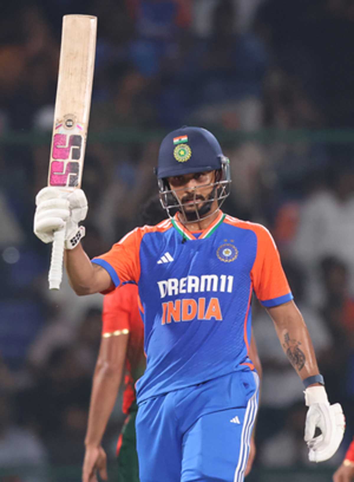 नई दिल्ली। नितीश कुमार रेड्डी (74) और रिंकू सिंह (53) के आतिशी अर्धशतकों से भारत ने बांग्लादेश के खिलाफ बुधवार को यहां अरुण जेटली स्टेडियम में दूसरे टी 20 मुकाबले में 9 विकेट पर 221 रन का विशाल स्कोर बना लिया।