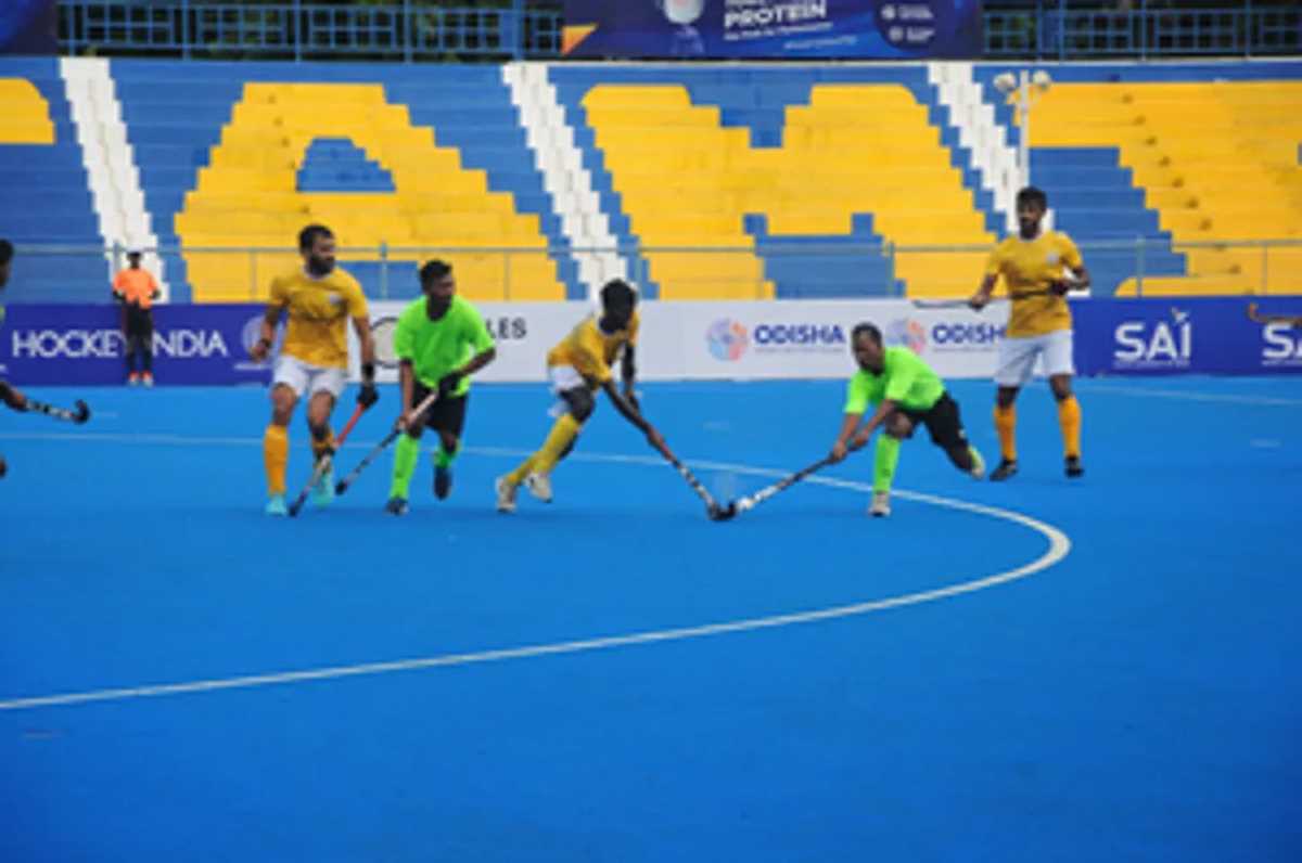 हॉकी यूनिट ऑफ तमिलनाडु ने हॉकी अंडमान और निकोबार को 43-0 से रौंदा। कप्तान कार्थी एस. (1’, 2’, 8’, 19’, 21’, 25’, 32’, 37’, 38’, 43’, 44’, 48’, 56’) ने 13 गोल करके टीम की अगुआई की। सोमन्ना बीपी (3’, 11’, 13’, 14’, 17’, 19’, 23’, 51’, 53’) ने भी नौ बार गोल करके प्रभावित किया, जबकि सुंदरपंडी (4’, 9’, 22’, 25’, 27’, 30’, 35’, 49’, 60’) ने नौ मौकों पर गोल किया। मारेश्वरन शक्तिवेल (14’, 24’, 28’, 29’, 37’, 54’) ने छह गोल किए और पृथ्वी जीएम (7’, 32’, 41’) ने हैट्रिक पूरी की। सेल्वाराज कनगराज (34’, 45’) ने दो गोल किए, जबकि एच श्याम कुमार (58’) ने मैच का अंतिम गोल किया।
