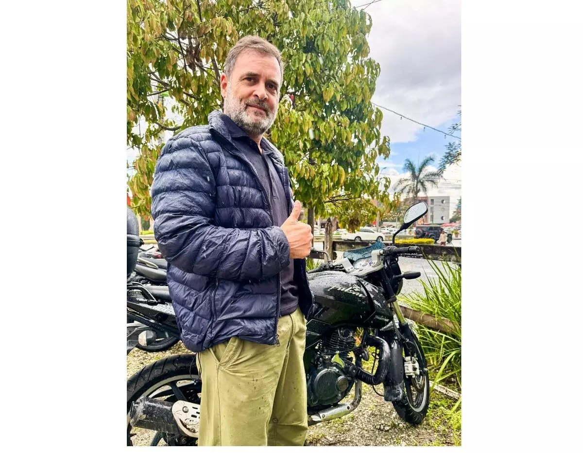 राहुल गांधी ने शुक्रवार को सोशल मीडिया प्लेटफॉर्म एक्स पर एक फोटो शेयर किया। इस फोटो में राहुल गांधी एक बाइक के साथ नजर आ रहे हैं, जो बजाज कंपनी की है।