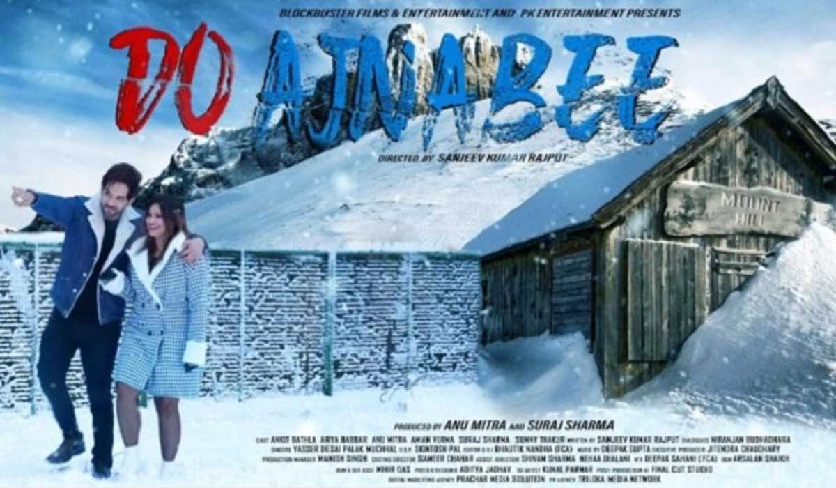 'ब्लाकबस्टर फिल्म एंटरटेनमेंट' एवं 'पी० के० एंटरटेनमेंट' के बैनर तले बन रही फिल्म दो अजनबी का निर्माण प्रोड्यूसर सूरज शर्मा एवं अनु मित्रा द्वारा किया जा रहा है। इस फिल्म में आर्य बब्बर और अंकित बाठला की मुख्य भूमिका है। फिल्म के निर्देशक संजीव कुमार राजपूत ने अपने सोशल मीडिया पर फिल्म का पोस्टर साझा करते हुए लिखा, “प्यार कभी मरता नहीं, प्यार का कोई अंत नहीं है, इसकी कोई हदें नहीं हैं'।”