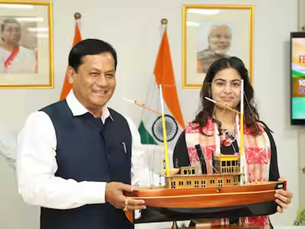 सर्बानंद सोनोवाल ने मनु भाकर को किया सम्मानित, 10 लाख रुपये का चेक सौंपा