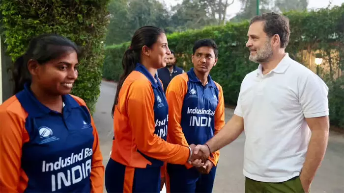 विमेंस ब्लाइंड टी20 विश्व कप विजेता टीम से मिले राहुल गांधी
