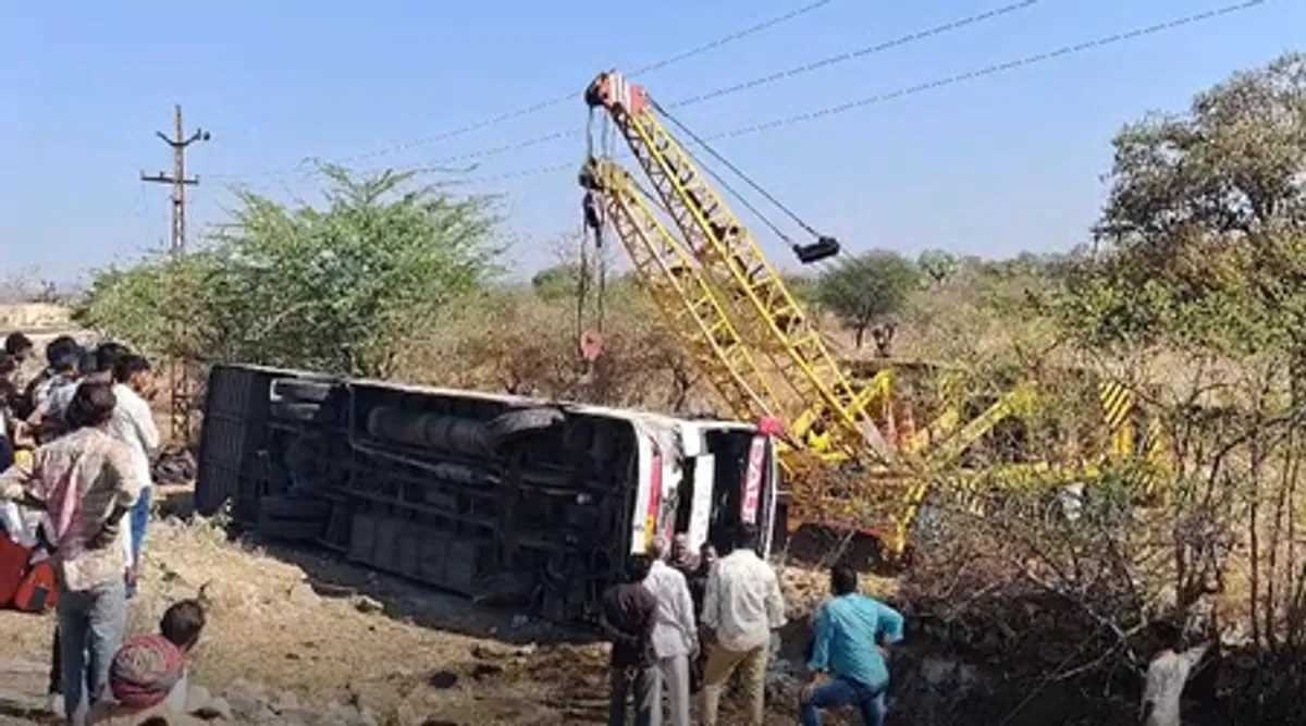 राजस्थान के राजसमंद में ड्राइवर को आई झपकी, बस पलटने से 13 यात्री घायल