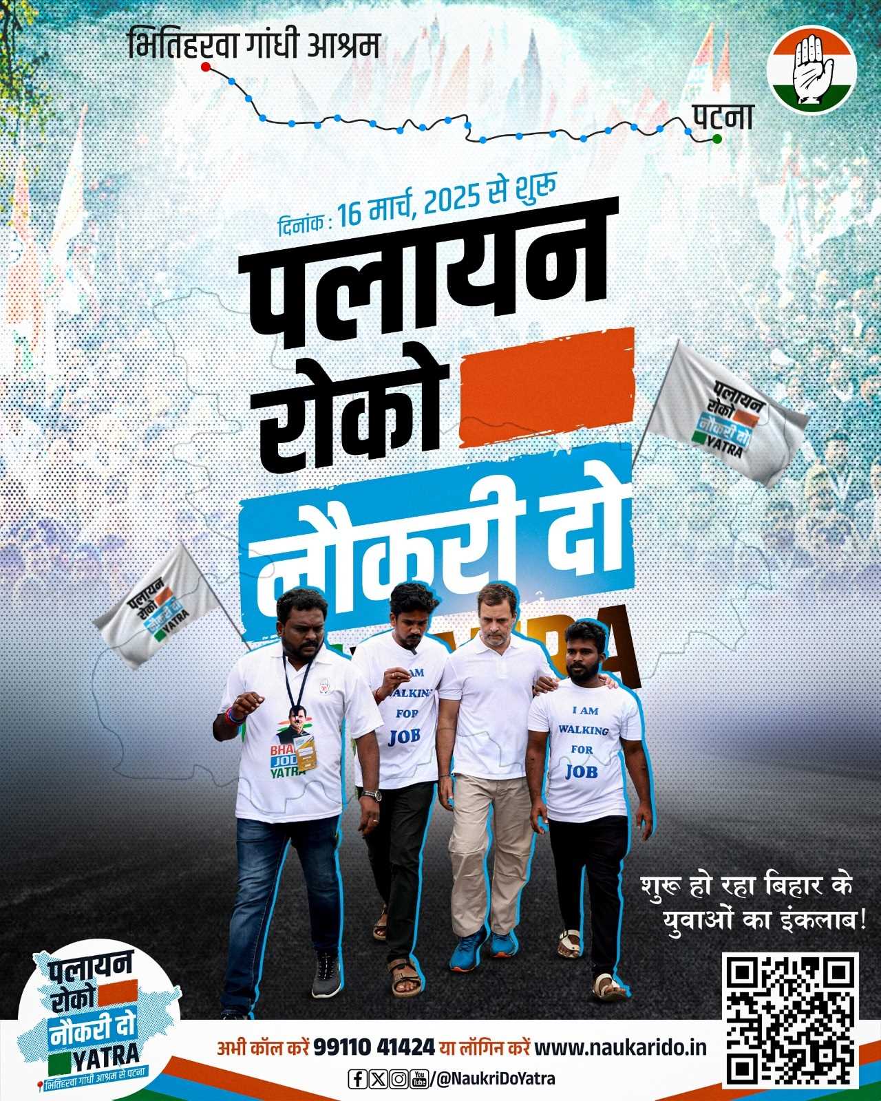 बिहार: कांग्रेस आज से 'पलायन रोको, नौकरी दो' यात्रा की कर रही शुरुआत