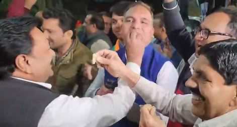 दिल्ली की मुख्यमंत्री चुने जाने पर रेखा गुप्ता के घर के बाहर जश्न का माहौल