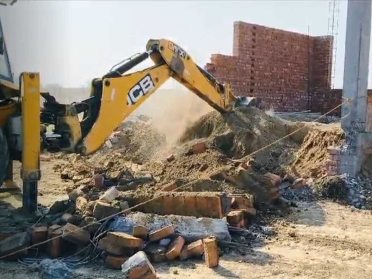 गाजीपुर पुलिस और तहसीलदार की निगरानी में बुलडोजर की कार्रवाई की गई और निर्माण कार्य को नष्ट कर दिया गया।