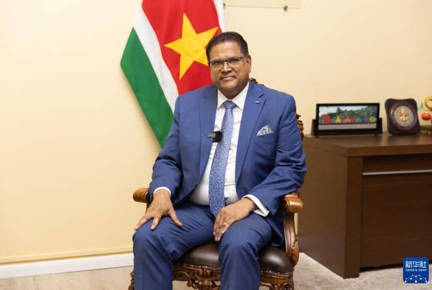 सूरीनाम के राष्ट्रपति चंद्रिका प्रसाद संतोखी ने राजधानी पारामारिबो में राष्ट्रपति कार्यालय में चीनी समाचार एजेंसी शिन्हुआ के एक रिपोर्टर के साथ एक इंटरव्यू में सूरीनाम और चीन के बीच स्थायी दोस्ती पर जोर दिया