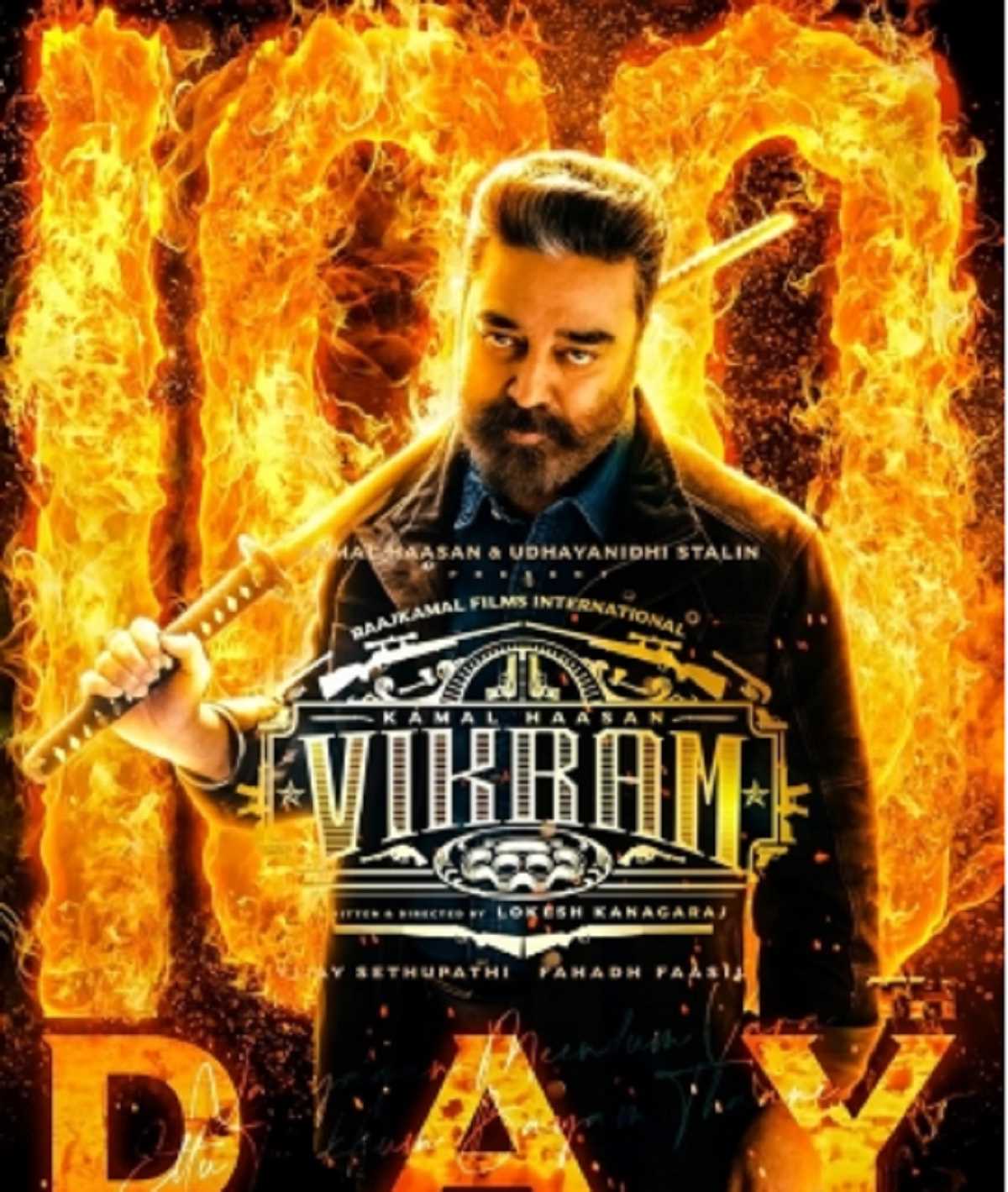 निर्देशक लोकेश कनकराज की 'विक्रम', जिसमें अभिनेता कमल हासन, विजय सेतुपति और फहद फासिल मुख्य भूमिका में हैं, ने अब सिनेमाघरों में 100 दिनों की शानदार दौड़ पूरी कर ली है।