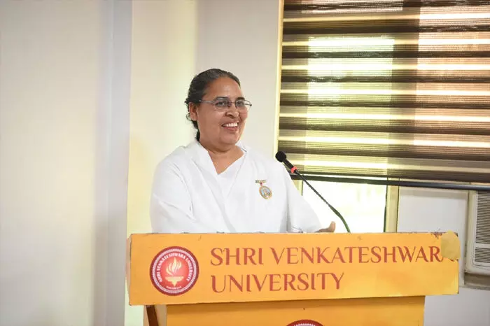 अपने सम्बोधन में वेंक्टेश्वरा समूह के संस्थापक अध्यक्ष श्री सुधीर गिरि ने कहा कि देश के सर्वोच्च संवैधानिक राष्ट्रपति पद पर महामहिम द्रापदी मुर्मू एवं उत्तर प्रदेश के राज्यपाल पद पर आदरणीया महामहिम आनंदी बेन पटेल का आसीन होना इस बात का परिचायक है कि आज भारत में महिलायें शिखर पर स्थापित है। आदरणीय प्रधानमंत्री जी की ’’बेटी बचाओ-बेटी पढ़ाओ-बेटी खिलाओ’’ एवं ’’नारी वंदन’’ जैसी शानदार योजनाओं से देश में मातृशक्ति का सम्मान बढ़ा है। प्रतिकुलाधिपति डाॅ0 राजीव त्यागी ने कहा कि सदियो से ही भारत में मातृशक्ति का वंदन होता रहा है एवं मातृशक्ति हमेशा वंदनीय रहेगी।