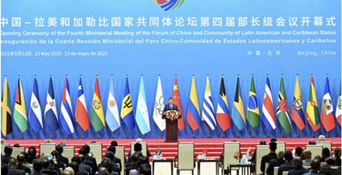 बीजिंग। चीनी राष्ट्रपति शी चिनफिंग ने राजधानी पेइचिंग स्थित राष्ट्रीय सम्मेलन केंद्र में चीन-लैटिन अमेरिकी और कैरेबियाई देशों के समुदाय के मंच के अधीनस्थ चौथे मंत्री स्तरीय सम्मेलन के उद्घाटन समारोह में भाषण दिया।