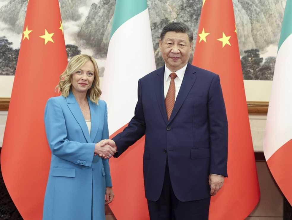 चीनी राष्ट्रपति शी चिनफिंग ने पेइचिंग में चीन की यात्रा पर आईं इटली की प्रधानमंत्री जियोर्जिया मेलोनी से सोमवार को मुलाकात की