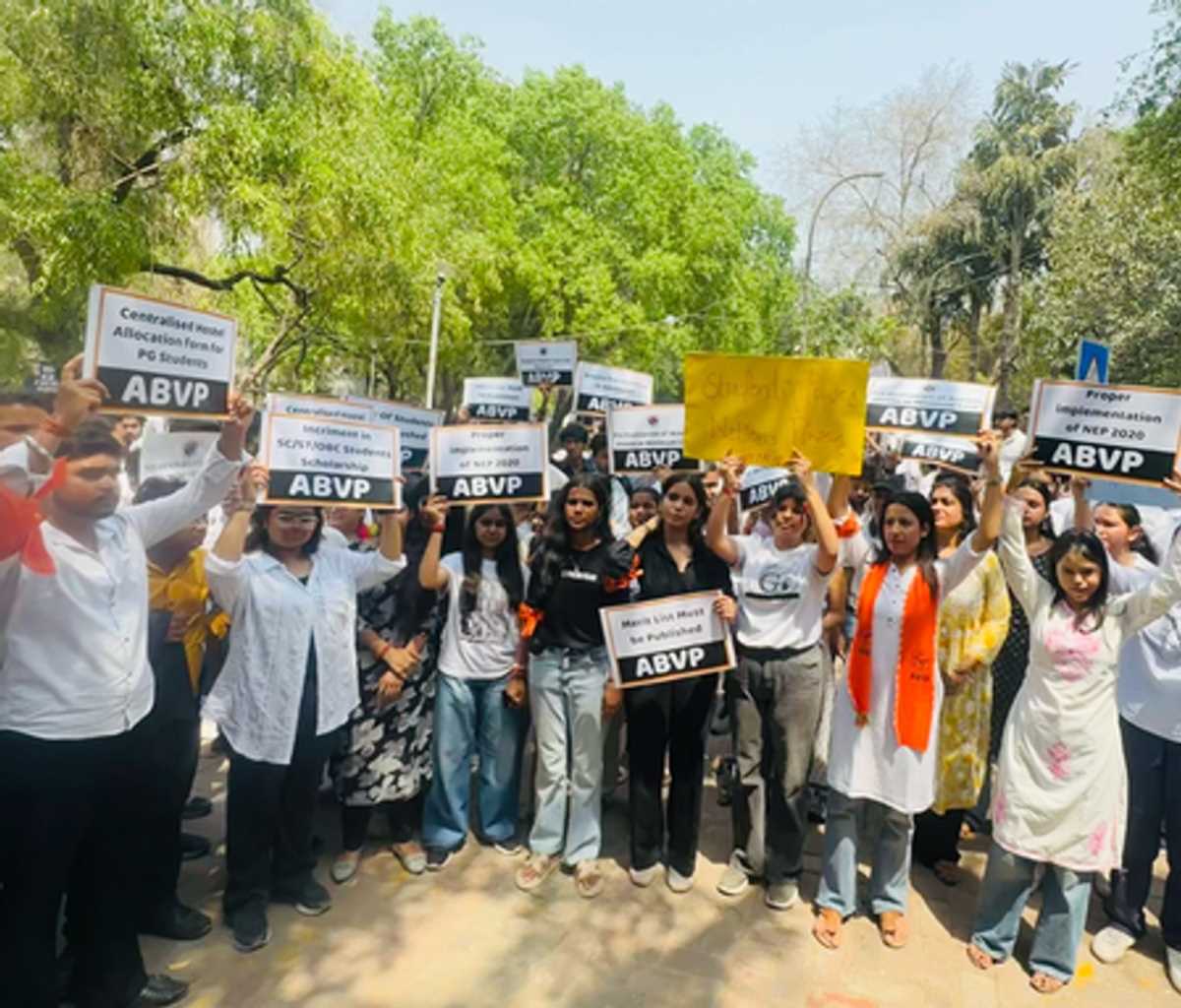 नई राष्ट्रीय शिक्षा नीति के कार्यान्वयन की मांग को लेकर अखिल भारतीय विद्यार्थी परिषद (अभाविप) ने दिल्ली विश्वविद्यालय में प्रदर्शन किया